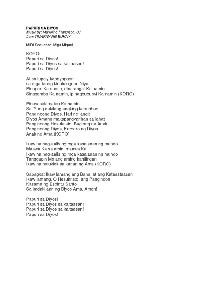 3 hindi ito dapat - pakinggan lamang dapat ay dinggin din. Sa diyos na buhay ni. Diyos ng langit at lupa Sambahin ka O Yahweh Ikaw ang Diyos na dakila.